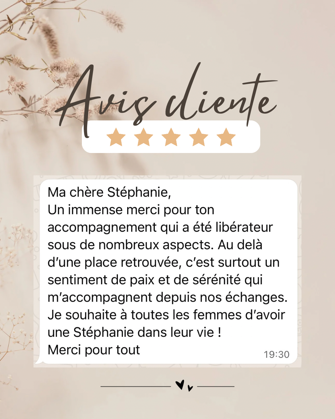 Vous êtes accompagnée par une professionnelle qui a l’expertise dans les outils qu’elle utilise et dont l’énergie est précisément faite pour ça.